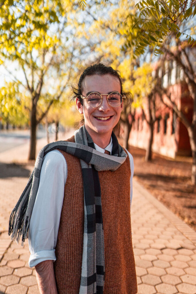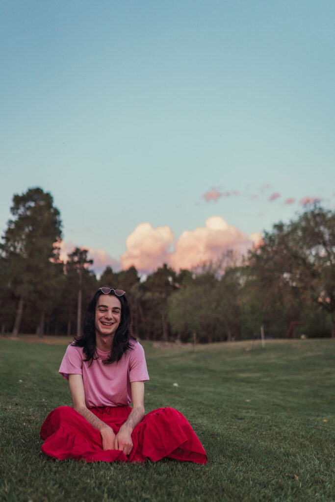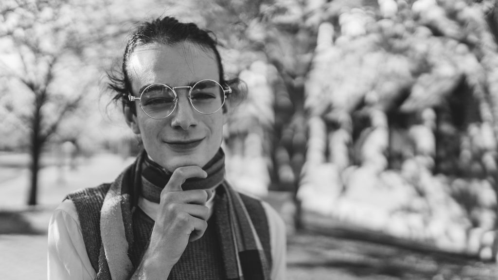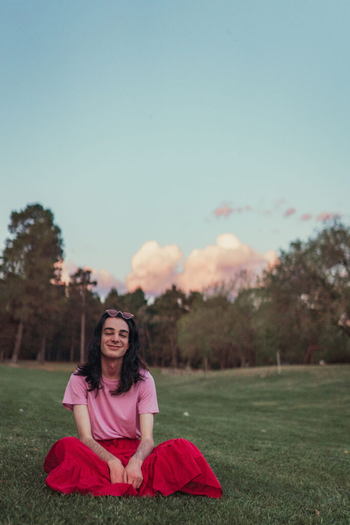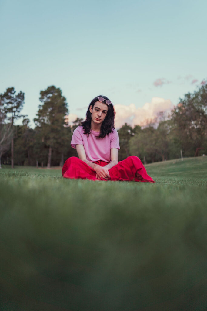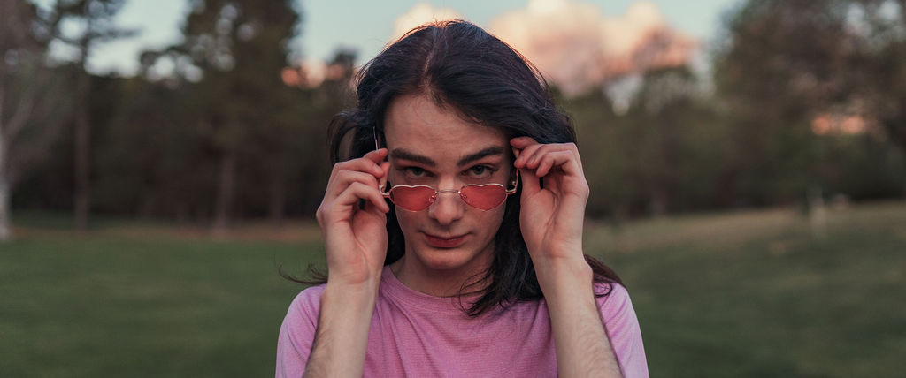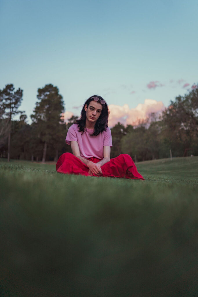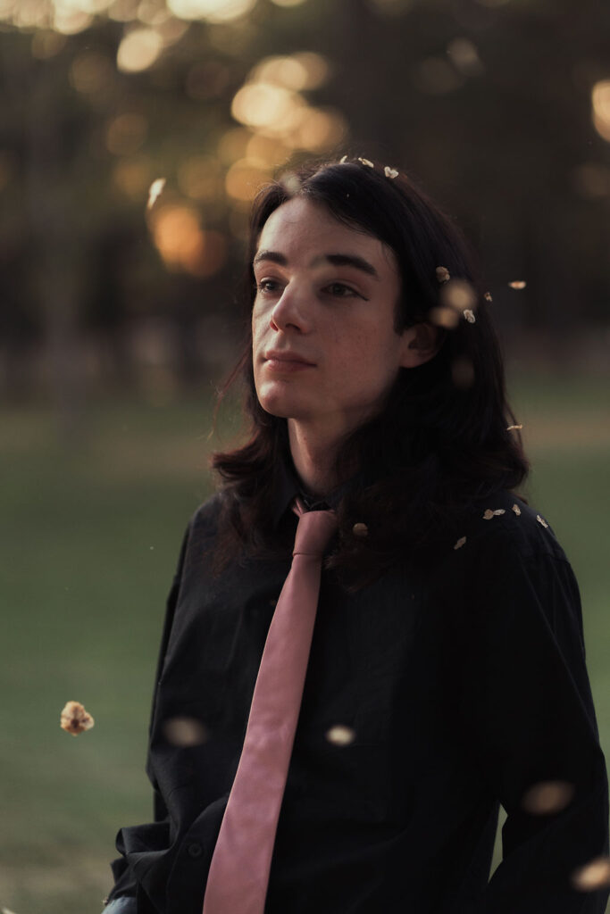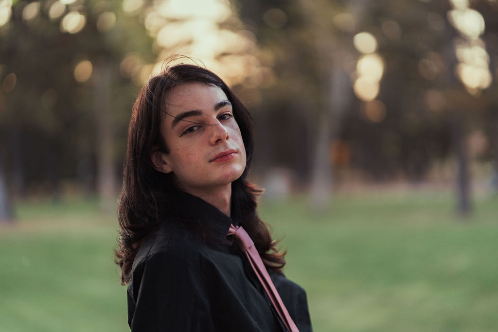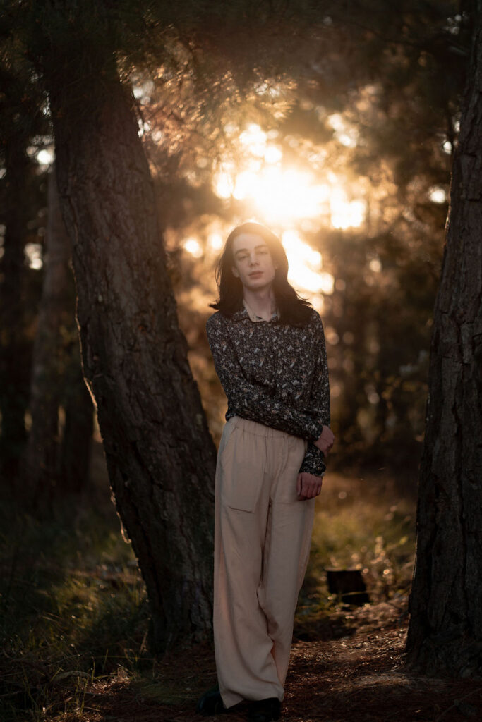 The outfit that became Leslie Grey. The beginnings of gender non-conformity, and probably the first time I properly tied my hair back (apart from my brother’s wedding). It still sticks out a bit at the sides. I need to figure out what to do when that happens. Tony and I shot these at Tuggeranong Library. I don’t wear glasses, by the way. But the more astute will notice they are the same I wore for Richard Grills in Dangerous Conceits. I…might have stolen them.