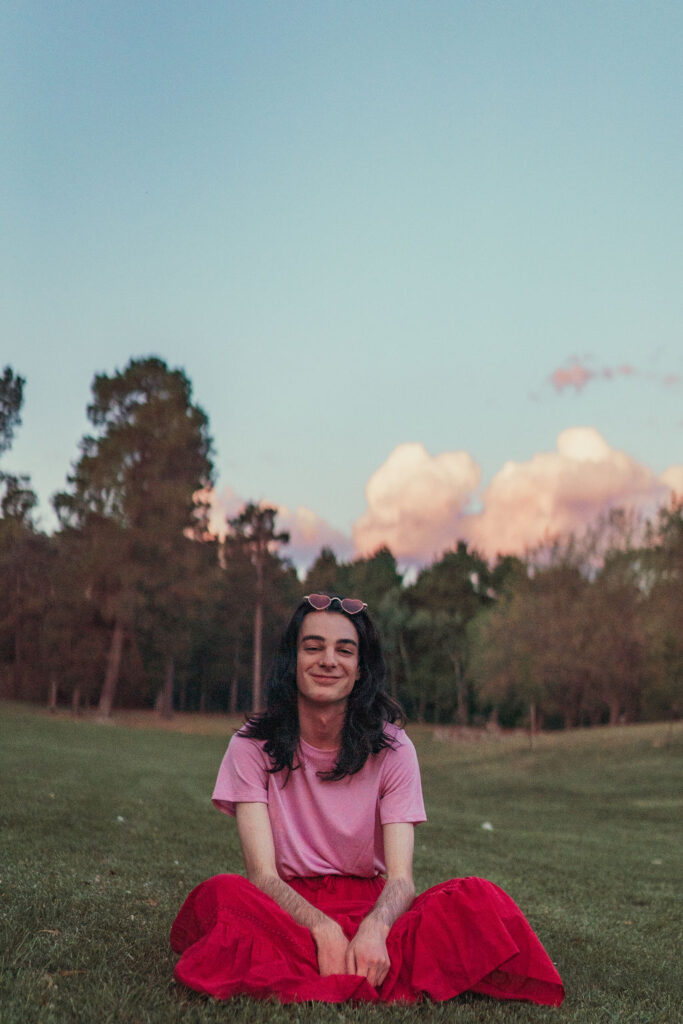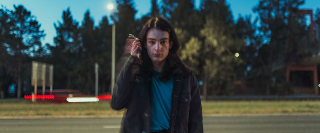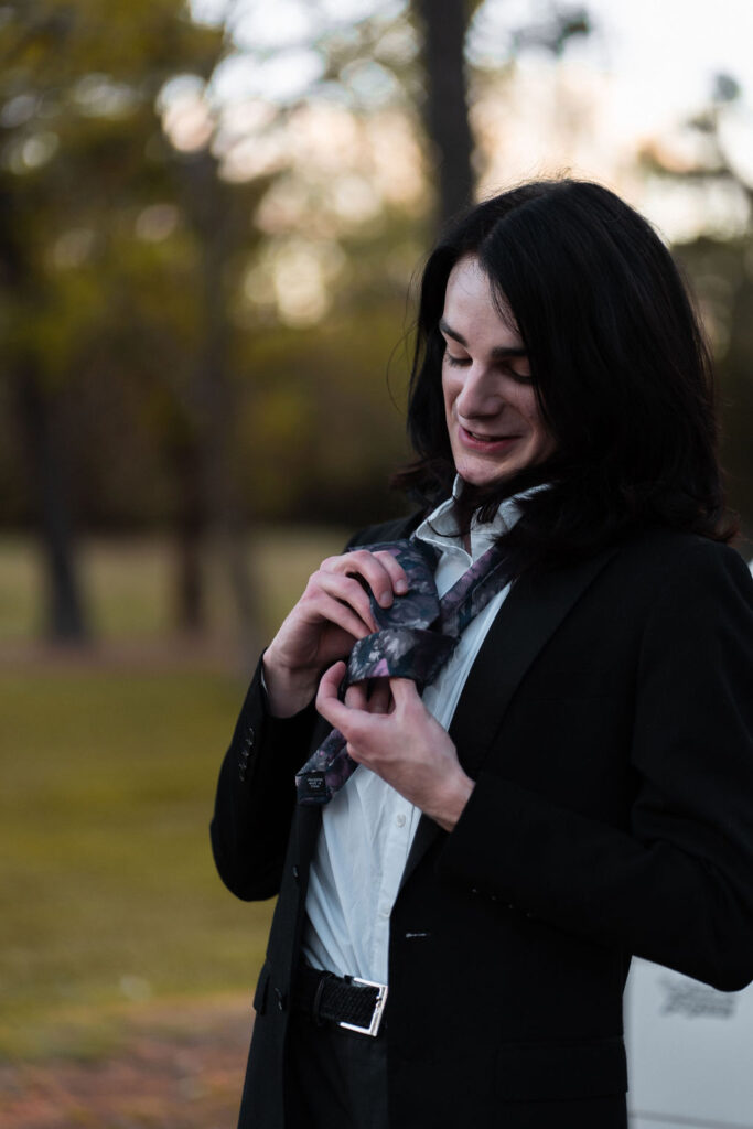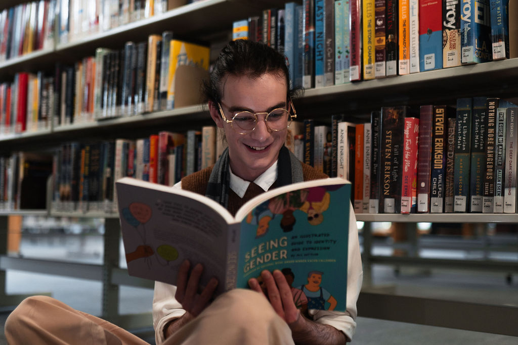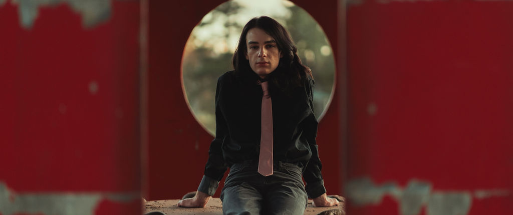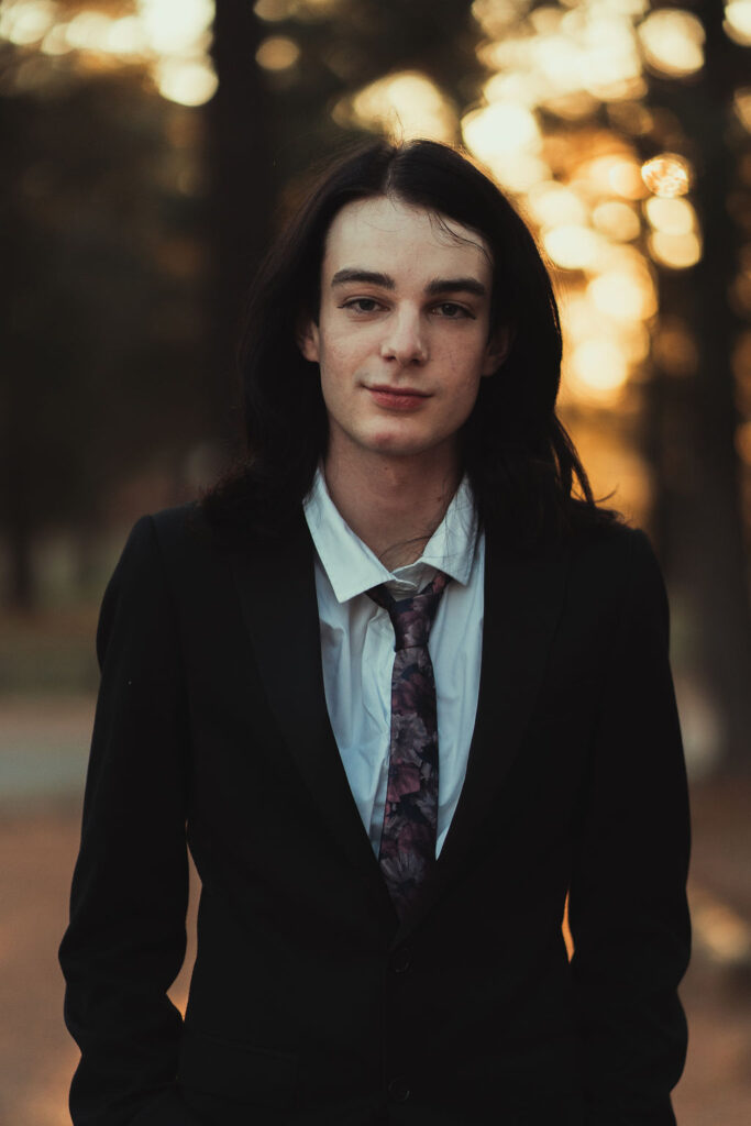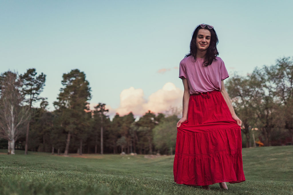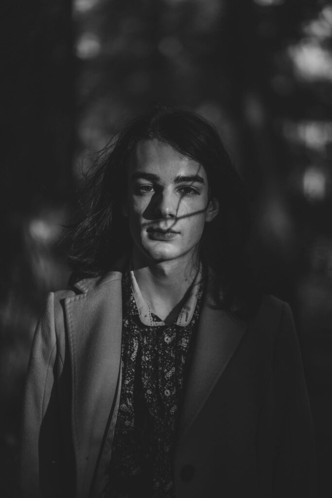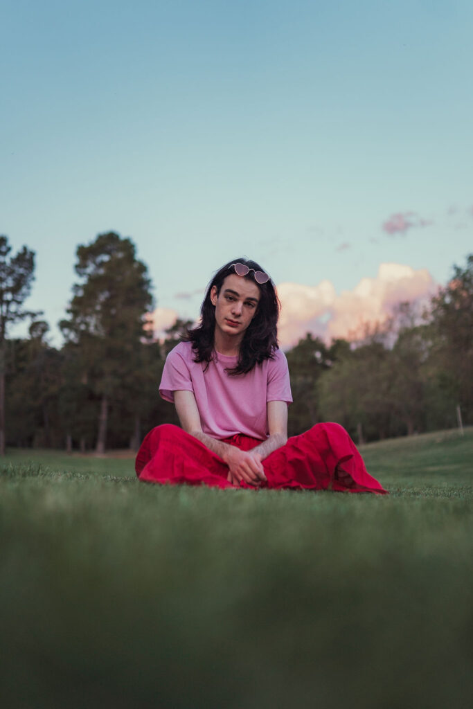 The outfit that became Leslie Grey. The beginnings of gender non-conformity, and probably the first time I properly tied my hair back (apart from my brother’s wedding). It still sticks out a bit at the sides. I need to figure out what to do when that happens. Tony and I shot these at Tuggeranong Library. I don’t wear glasses, by the way. But the more astute will notice they are the same I wore for Richard Grills in Dangerous Conceits. I…might have stolen them.
