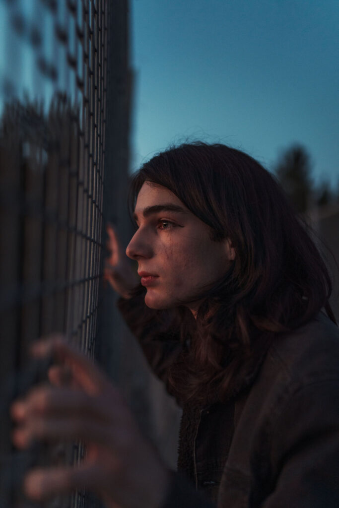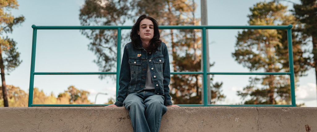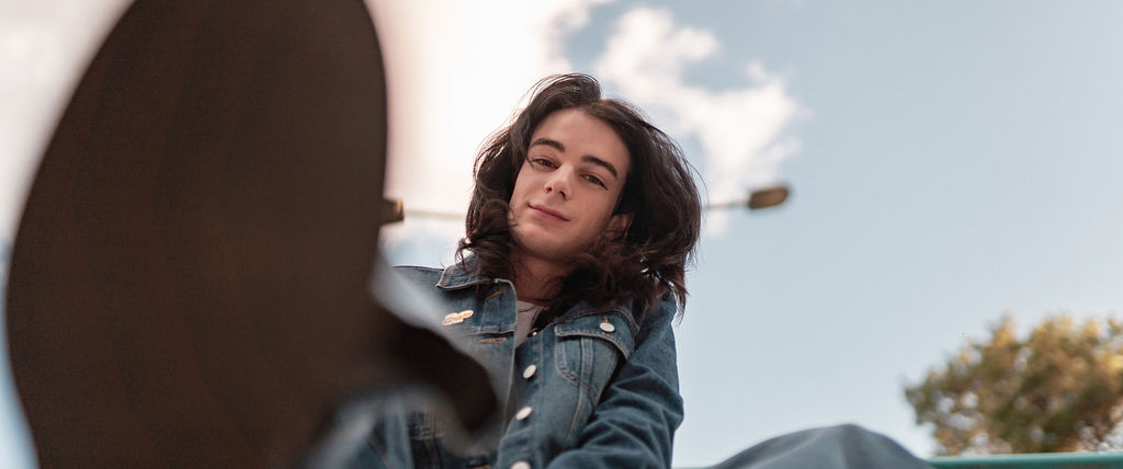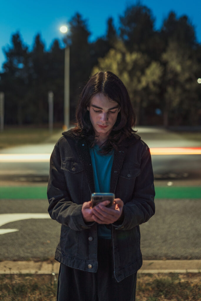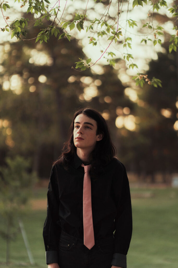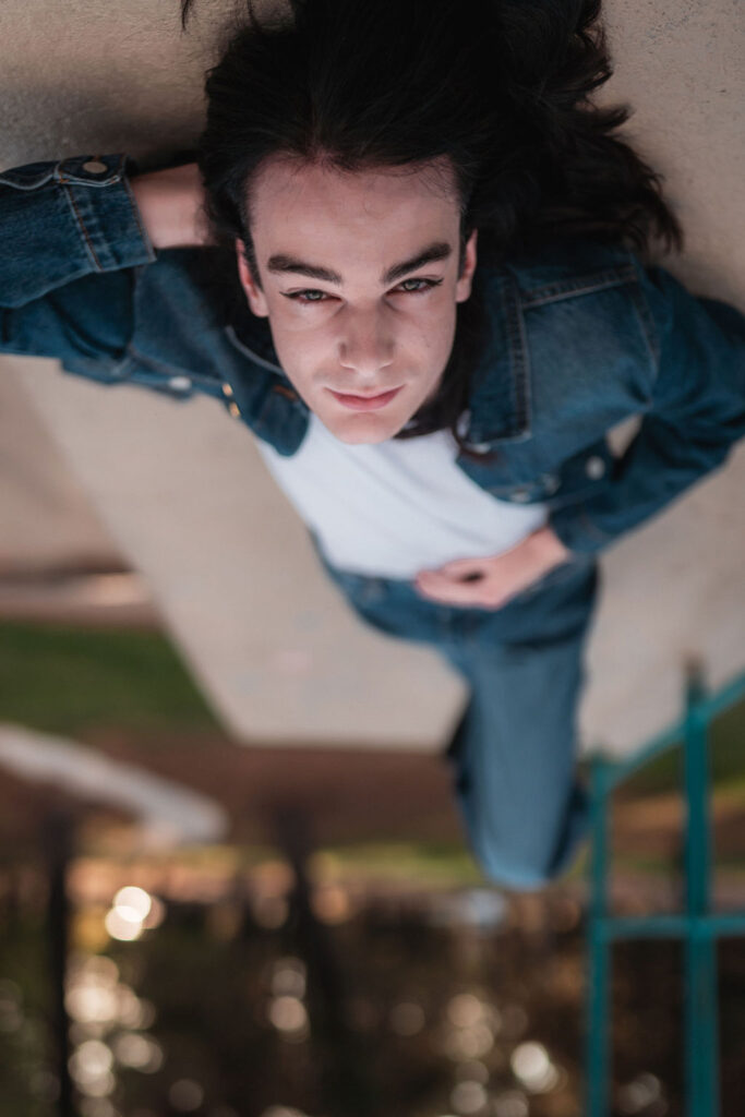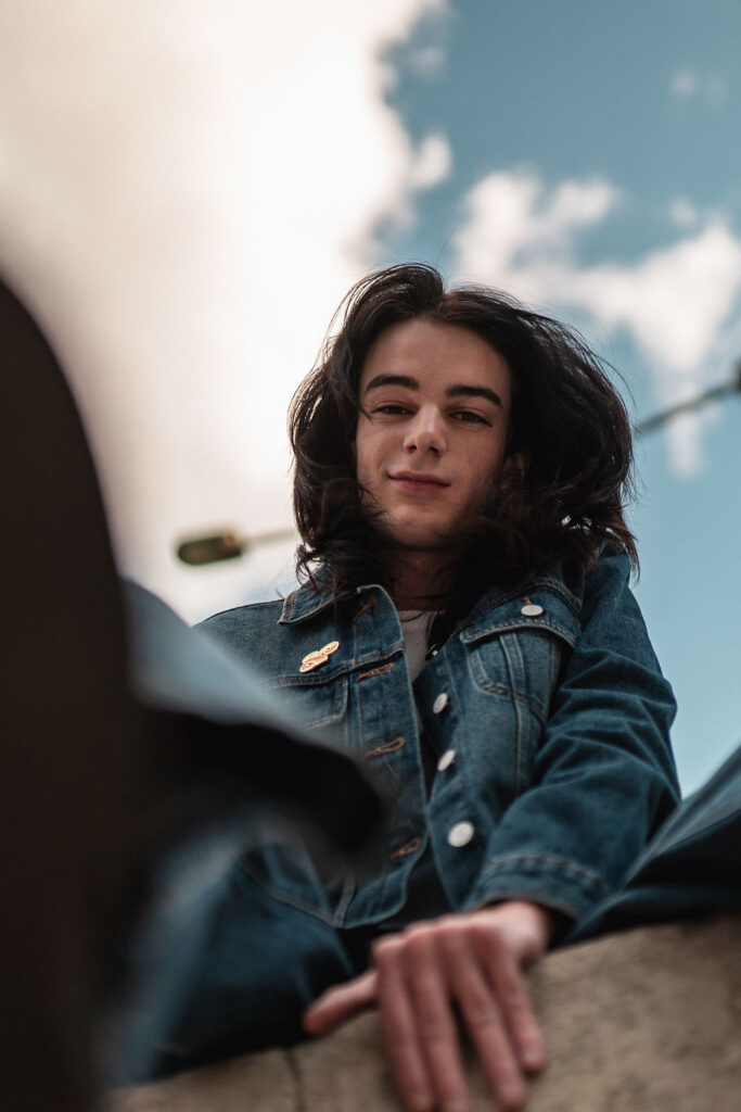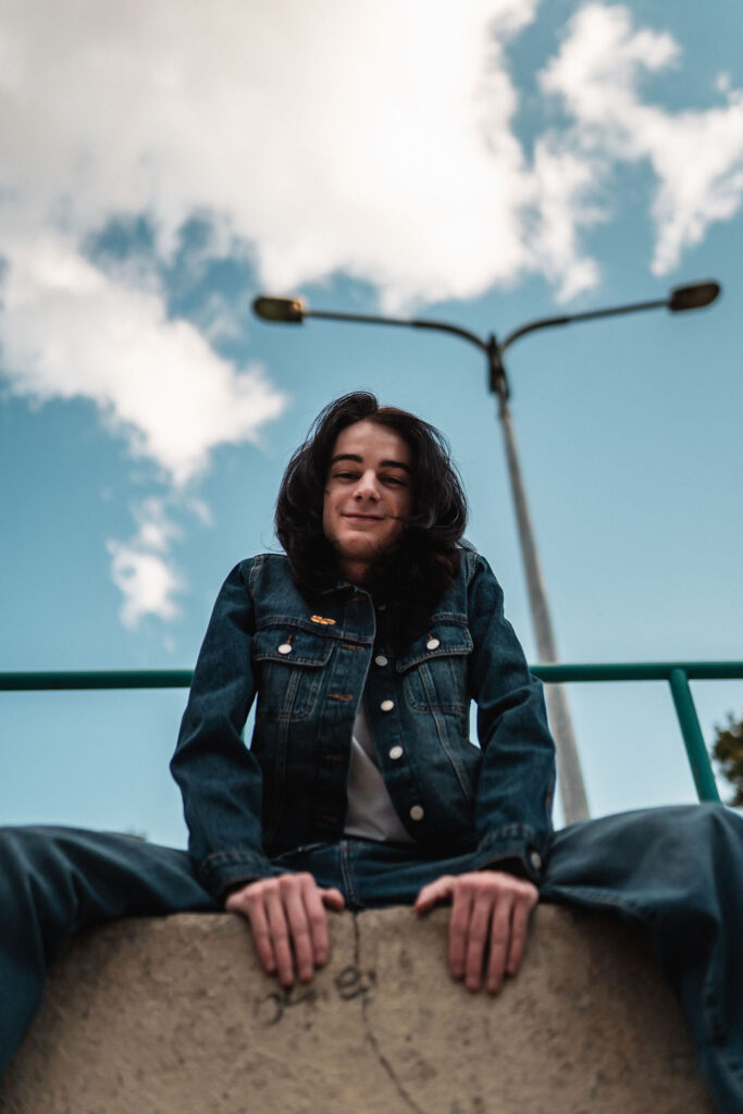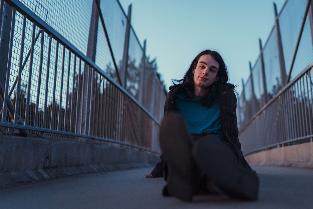 The “political campaign” was Tony’s idea. We went to the carpark of Fadden Pines In this, I struggle to tie a tie, attempt to climb up a road sign and also lean back in a way that felt weird at the time but looks really cool and artistic. The album cover for Just a Little Bit Mad is from this section.