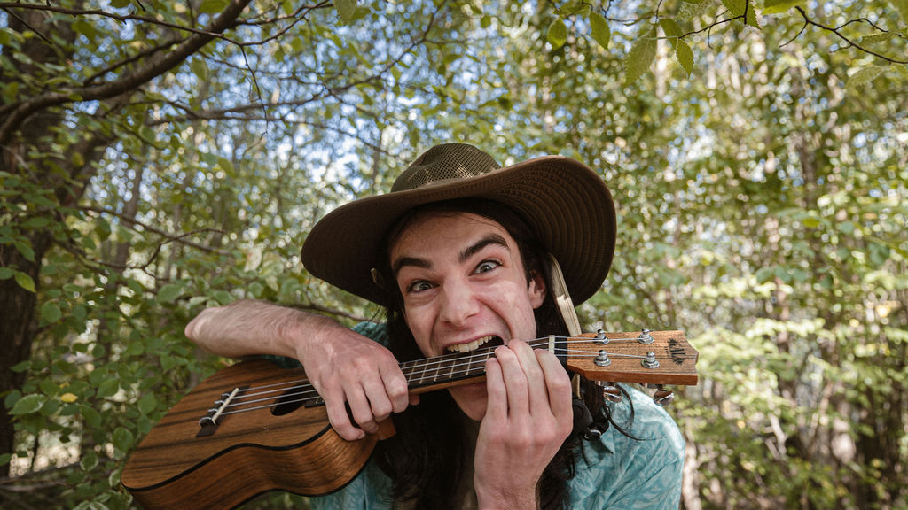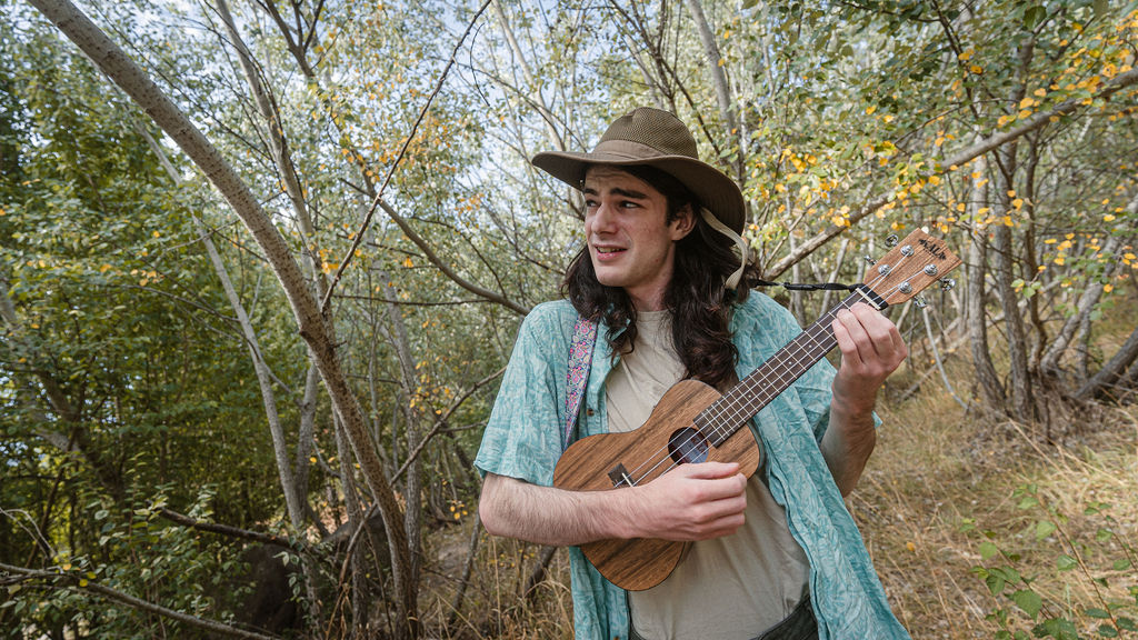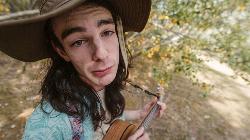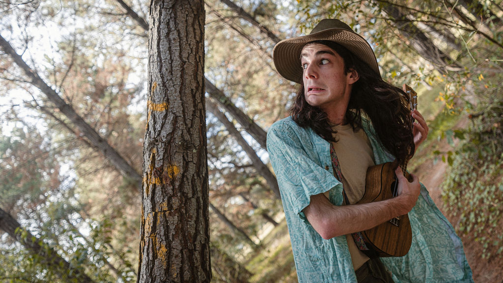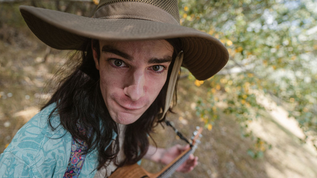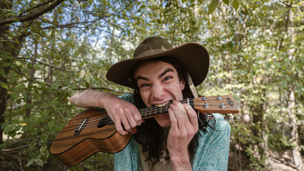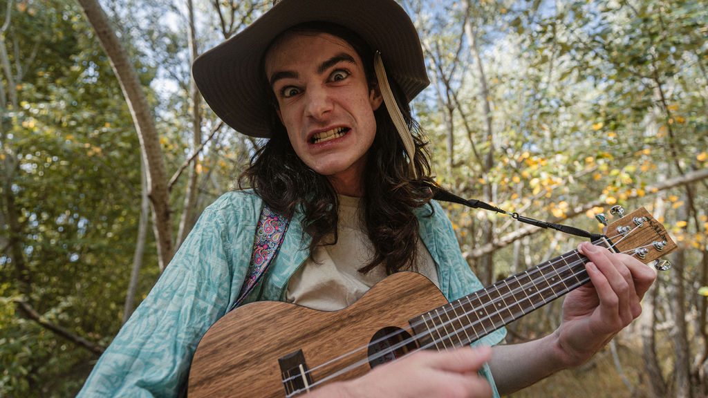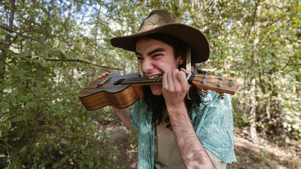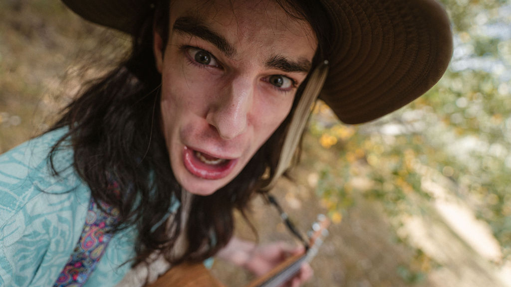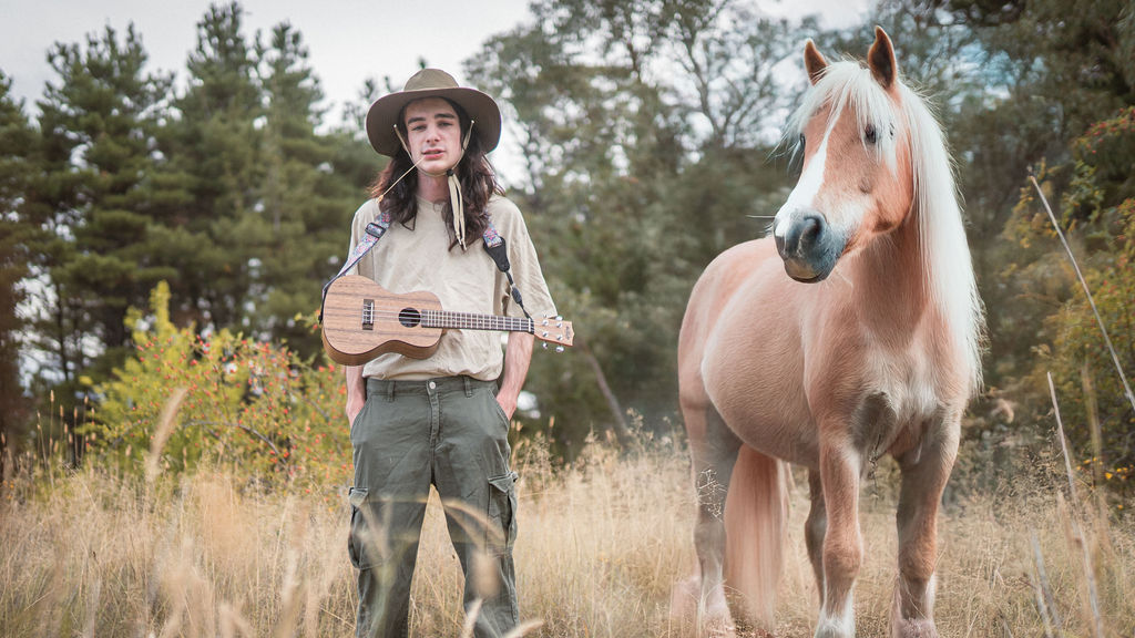 Tony and I returned to Fadden Pines, this time with the purpose of getting some photos that look absolutely crazy. Dressed as Brad, the character with the Horse Brother, I mime petting a horse next to me, take a dump behind a tree, search through the long grass, make out with my ukulele, eat my ukulele and break reality next to a tree.
