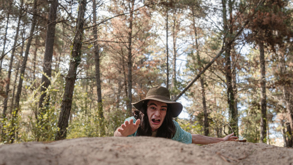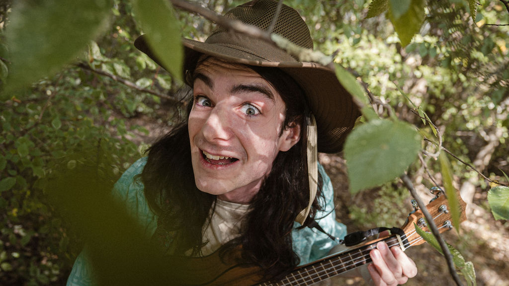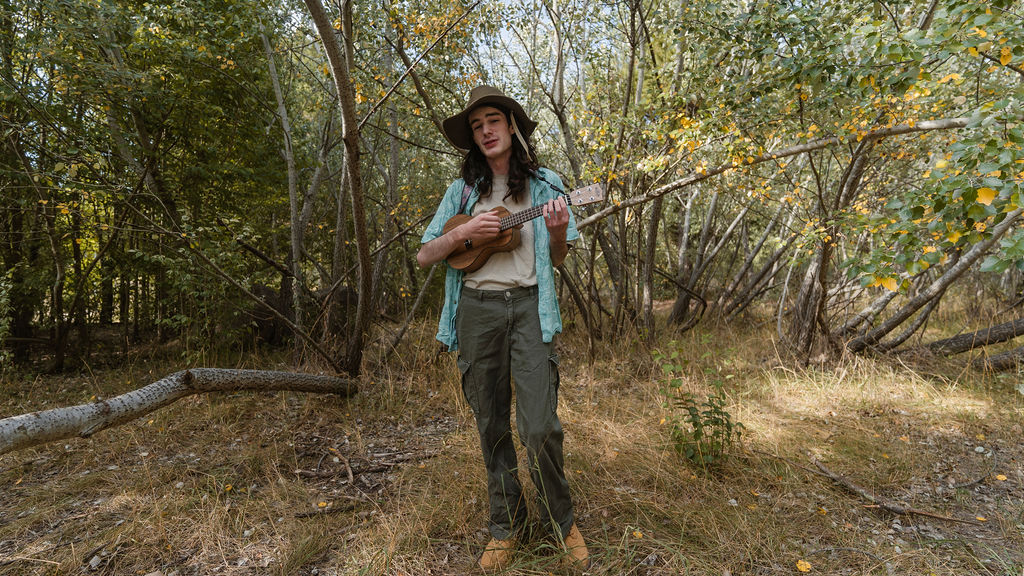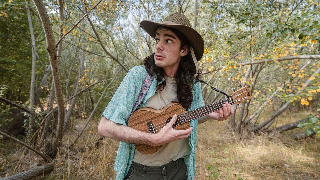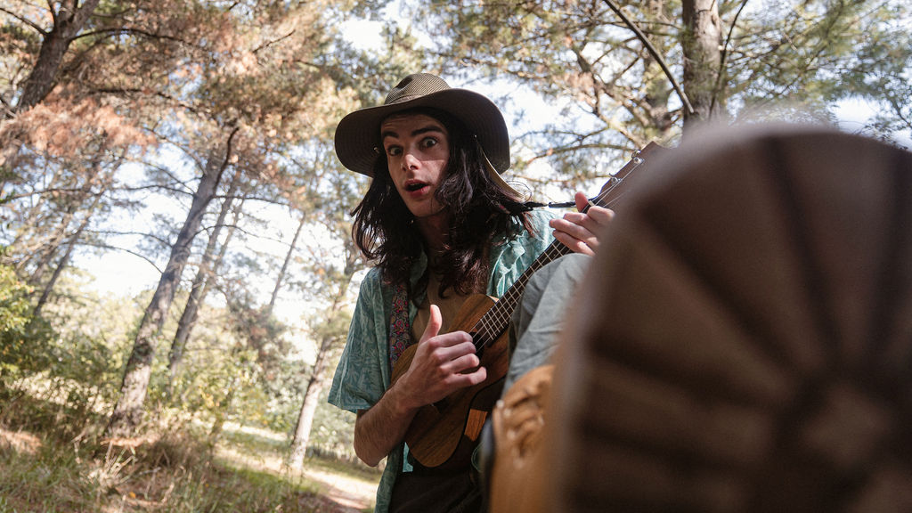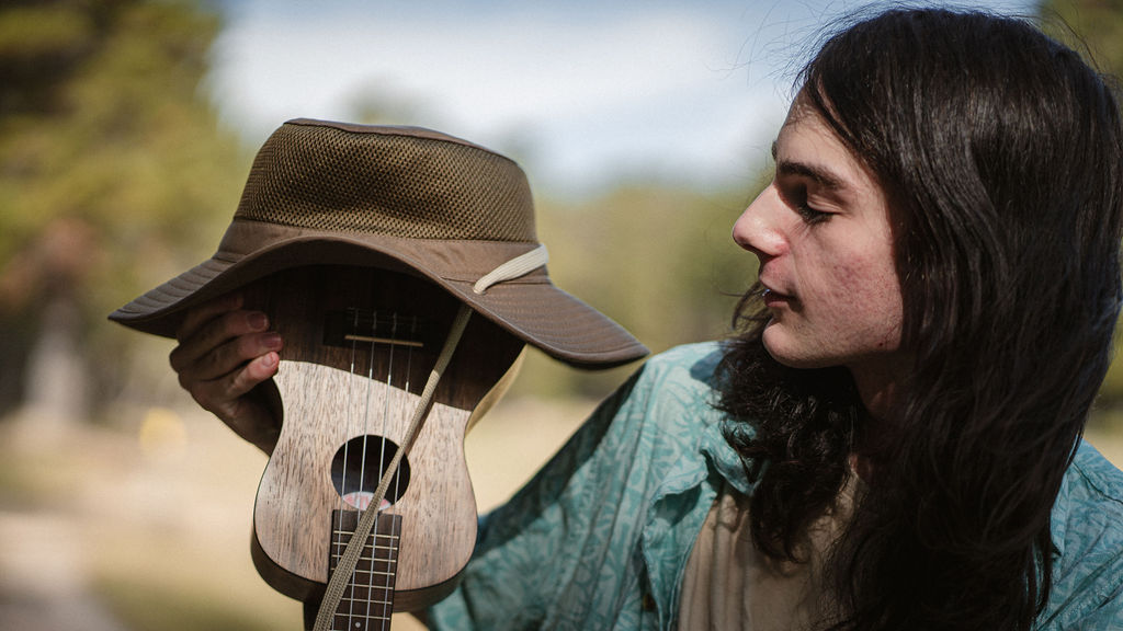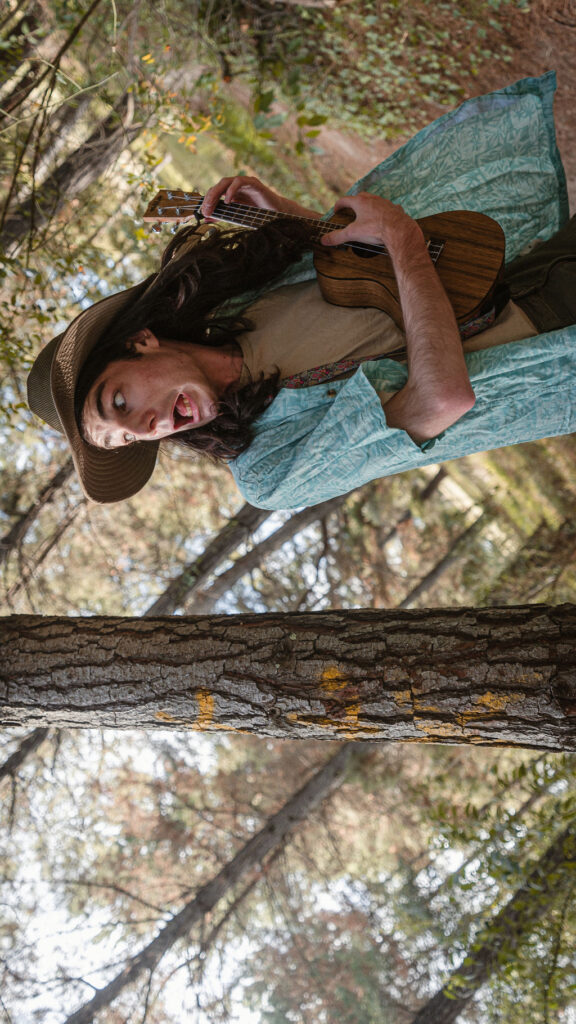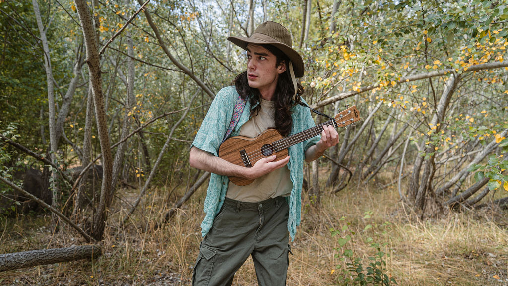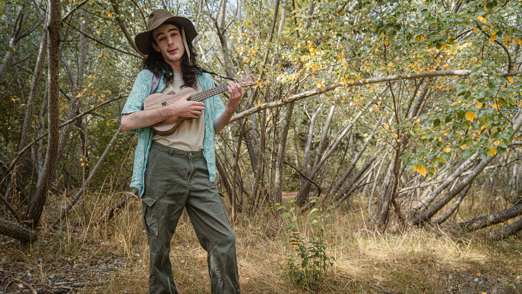 Tony and I returned to Fadden Pines, this time with the purpose of getting some photos that look absolutely crazy. Dressed as Brad, the character with the Horse Brother, I mime petting a horse next to me, take a dump behind a tree, search through the long grass, make out with my ukulele, eat my ukulele and break reality next to a tree.