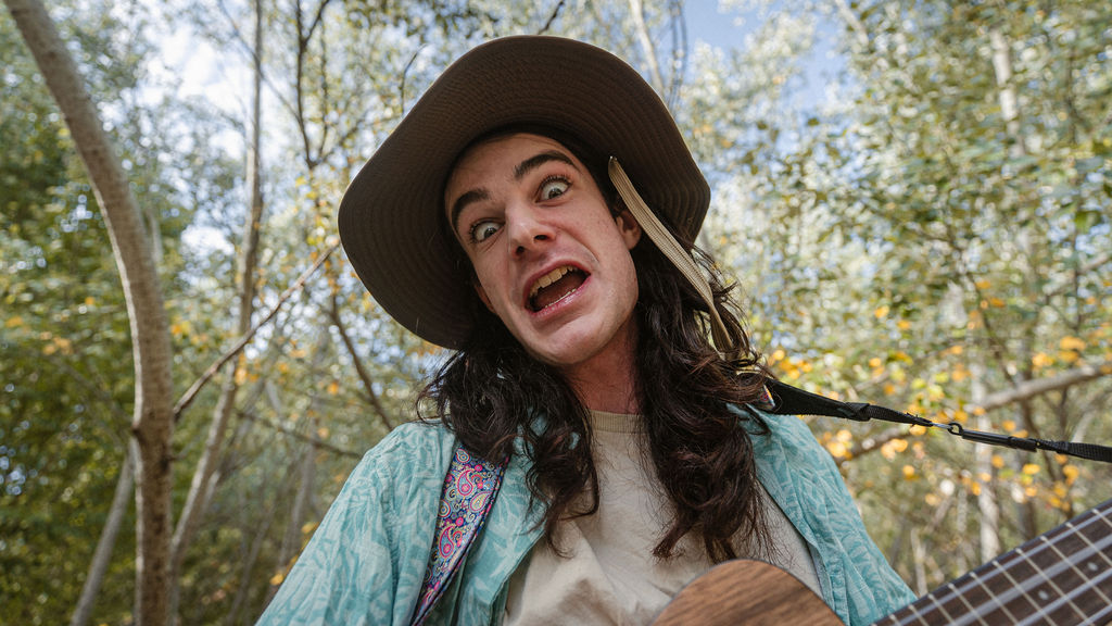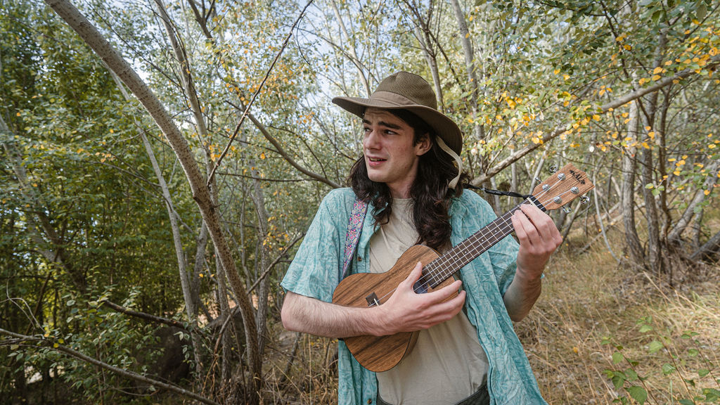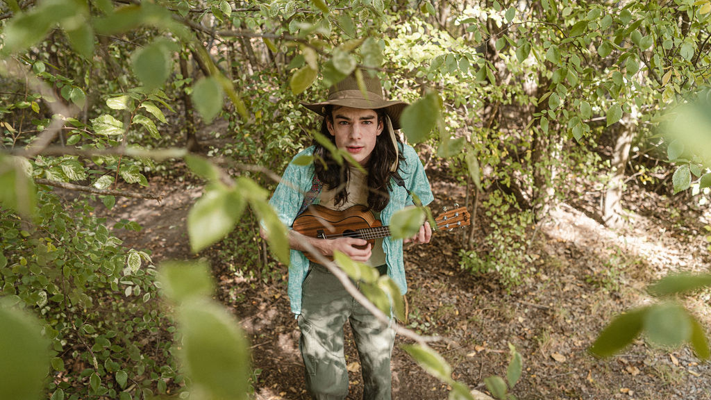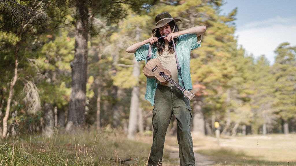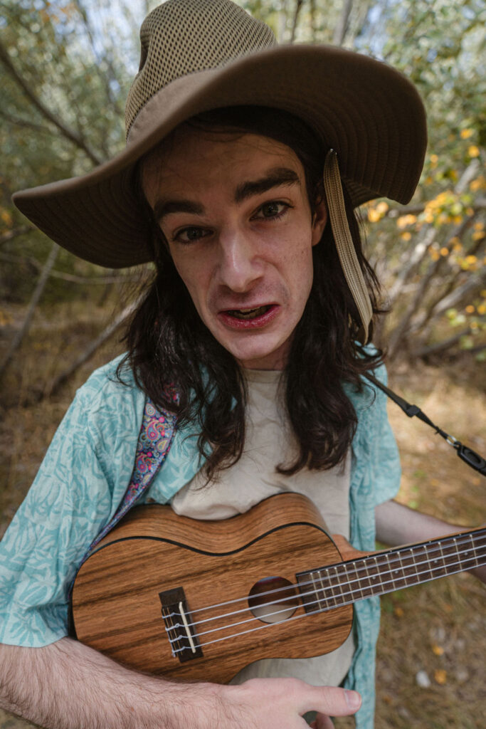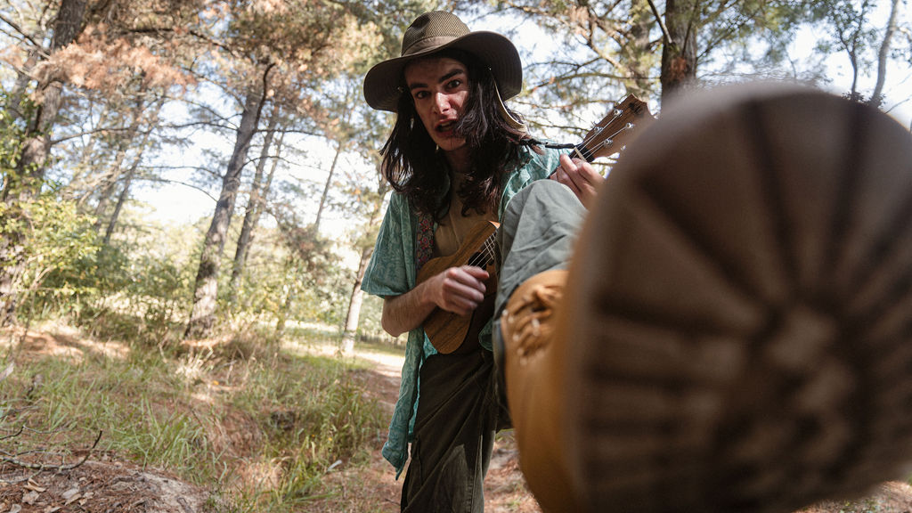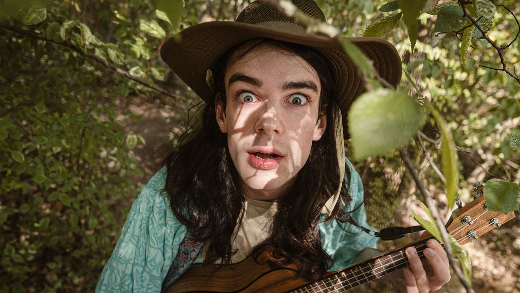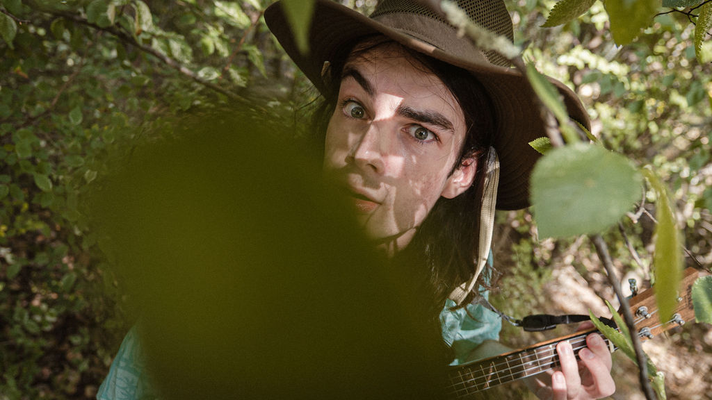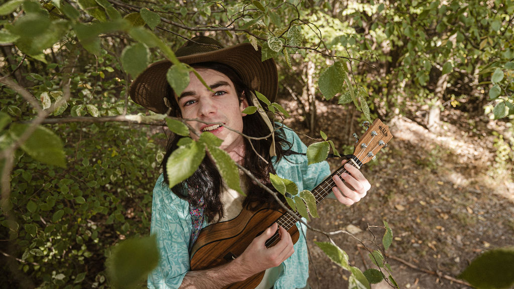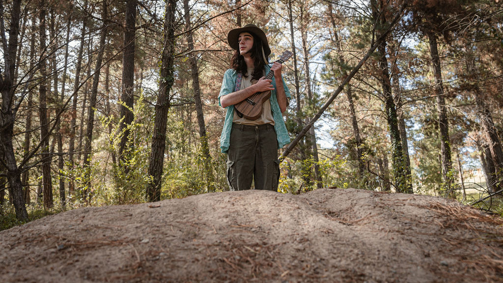 Tony and I returned to Fadden Pines, this time with the purpose of getting some photos that look absolutely crazy. Dressed as Brad, the character with the Horse Brother, I mime petting a horse next to me, take a dump behind a tree, search through the long grass, make out with my ukulele, eat my ukulele and break reality next to a tree.