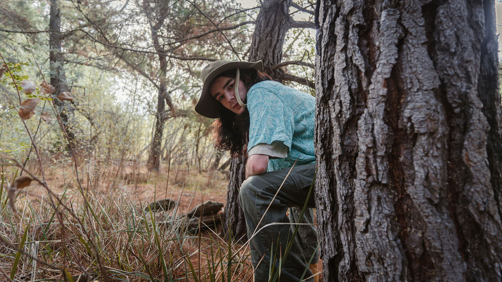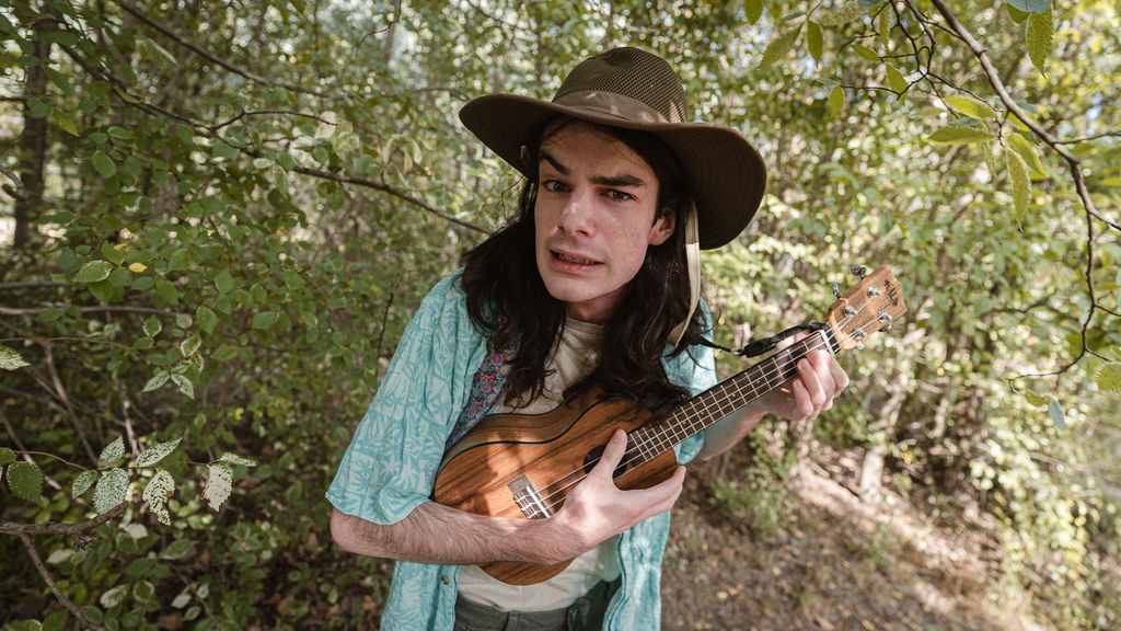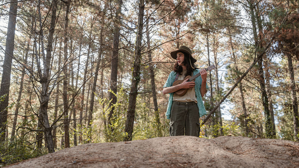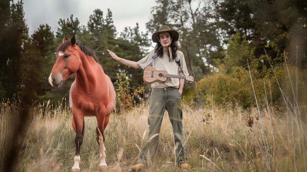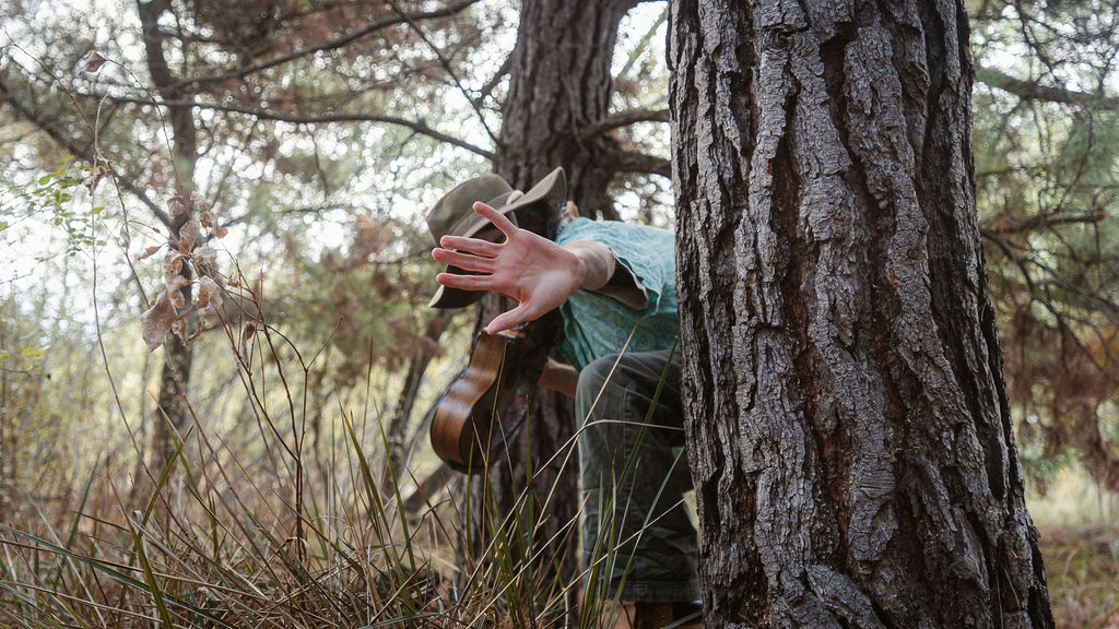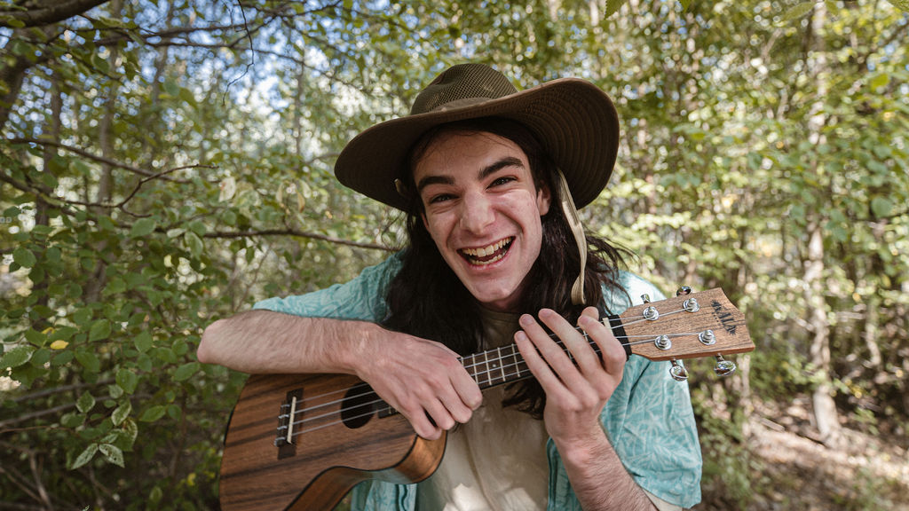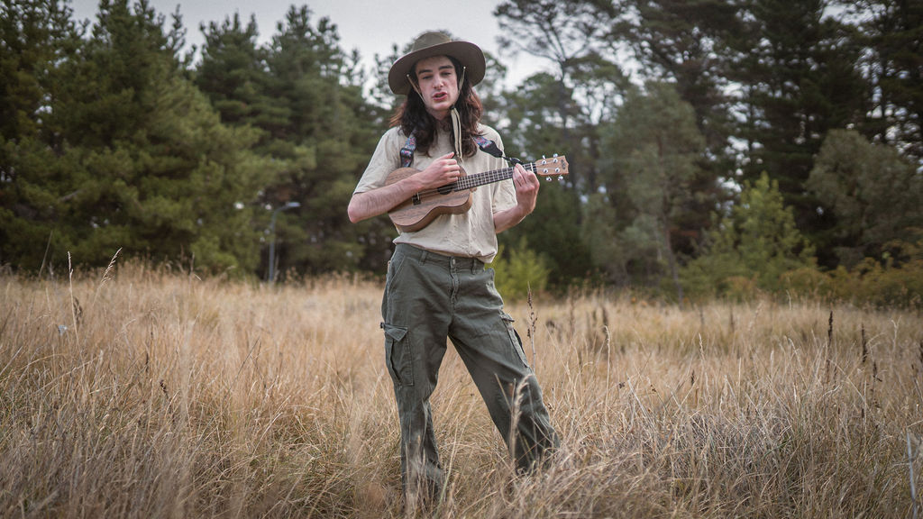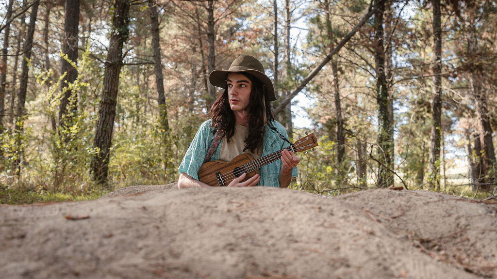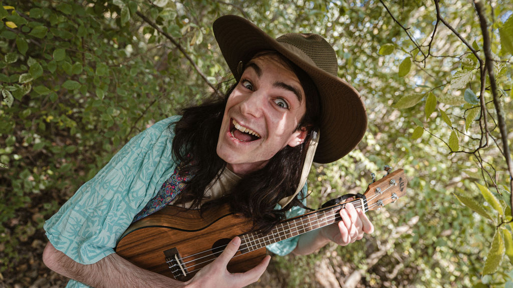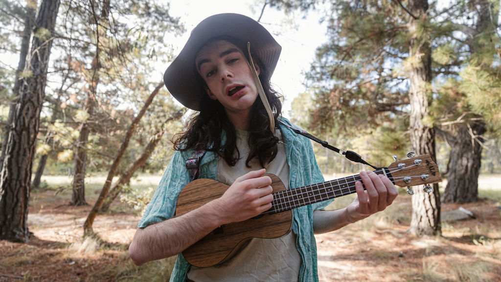 Tony and I returned to Fadden Pines, this time with the purpose of getting some photos that look absolutely crazy. Dressed as Brad, the character with the Horse Brother, I mime petting a horse next to me, take a dump behind a tree, search through the long grass, make out with my ukulele, eat my ukulele and break reality next to a tree.