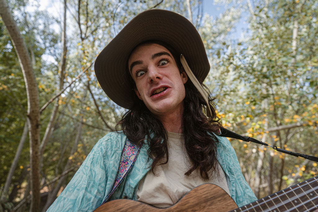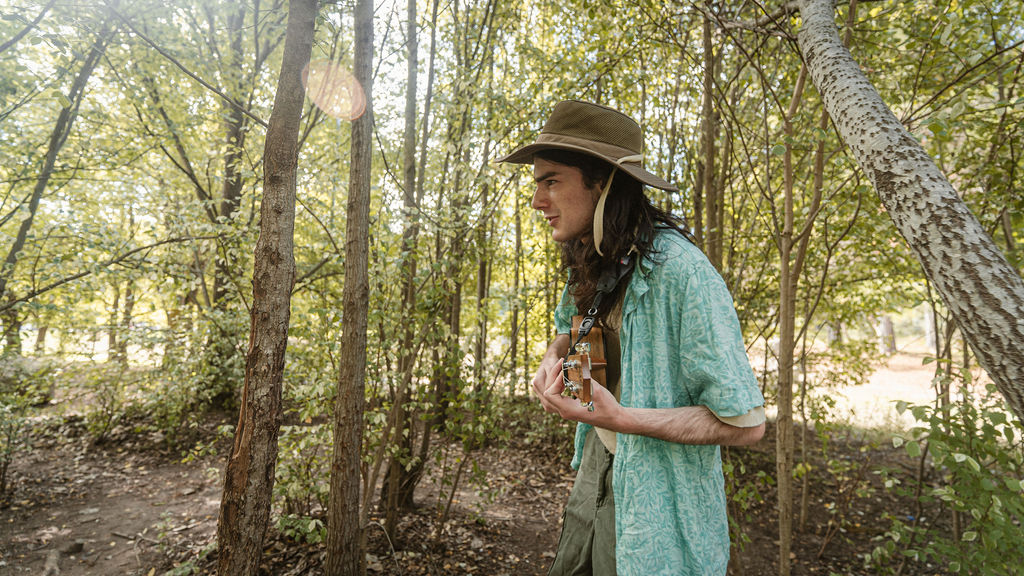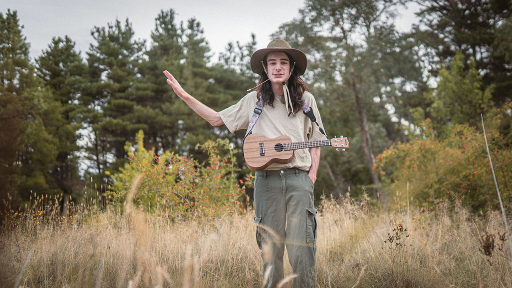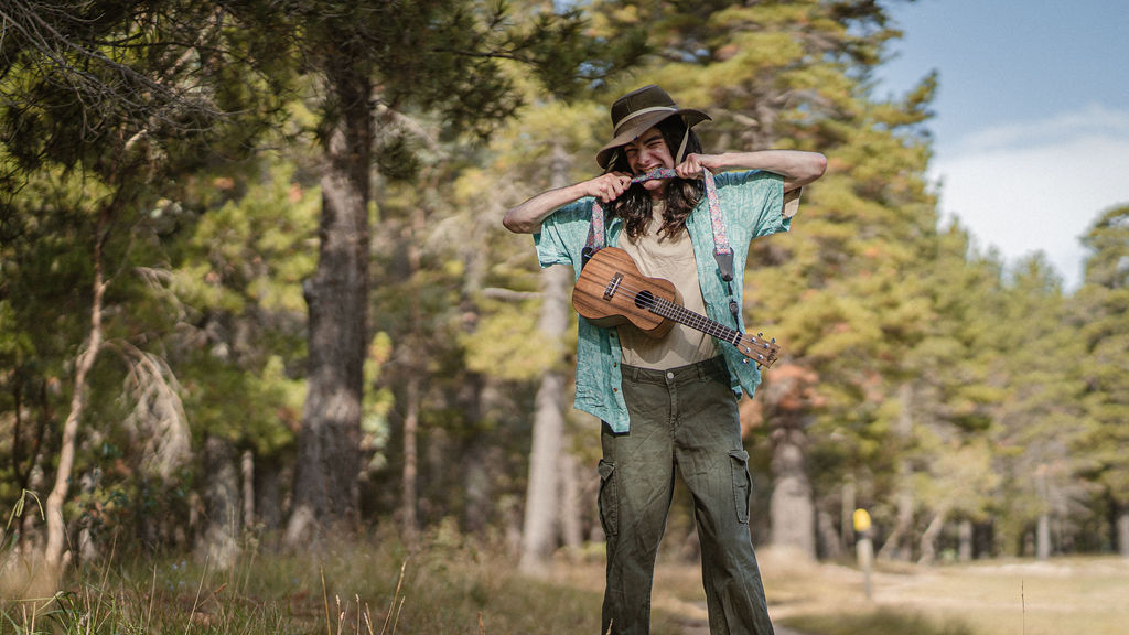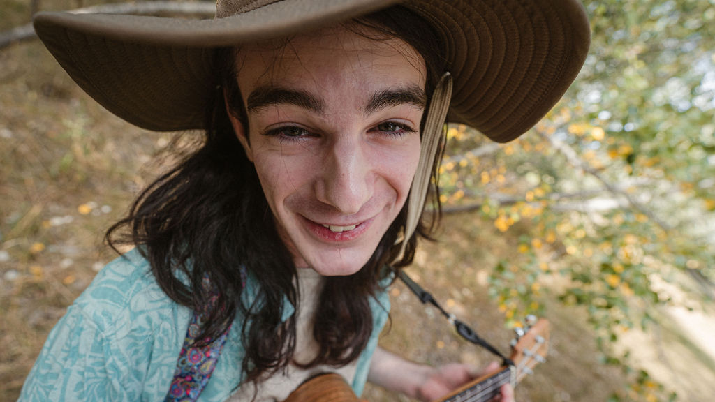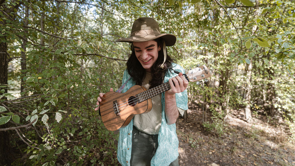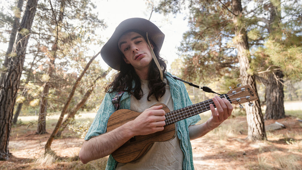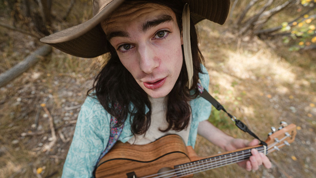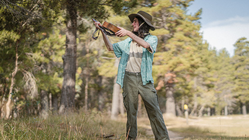Tony and I returned to Fadden Pines, this time with the purpose of getting some photos that look absolutely crazy. Dressed as Brad, the character with the Horse Brother, I mime petting a horse next to me, take a dump behind a tree, search through the long grass, make out with my ukulele, eat my ukulele and break reality next to a tree.