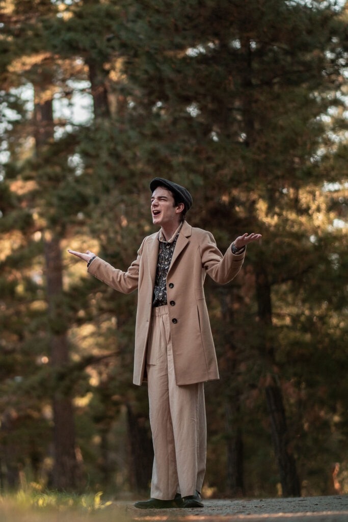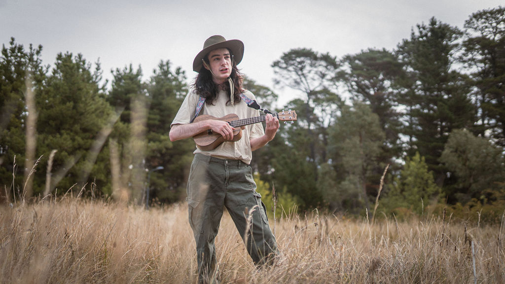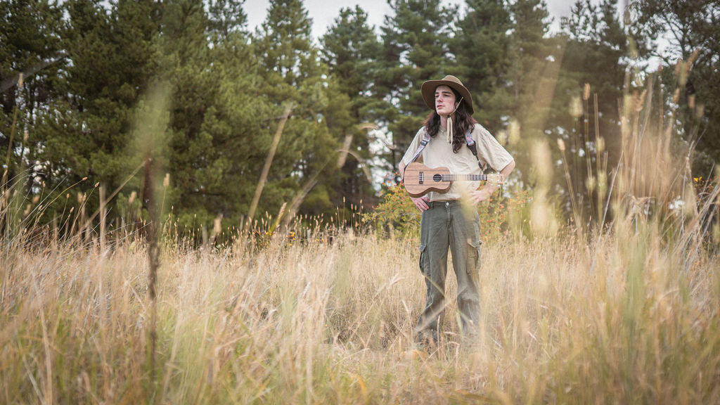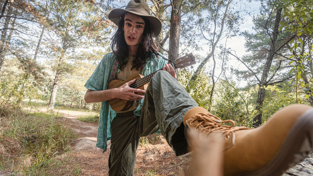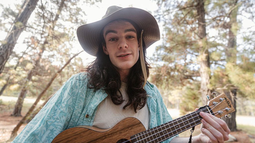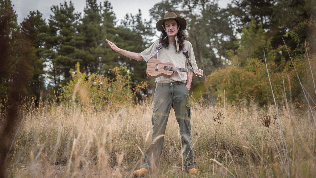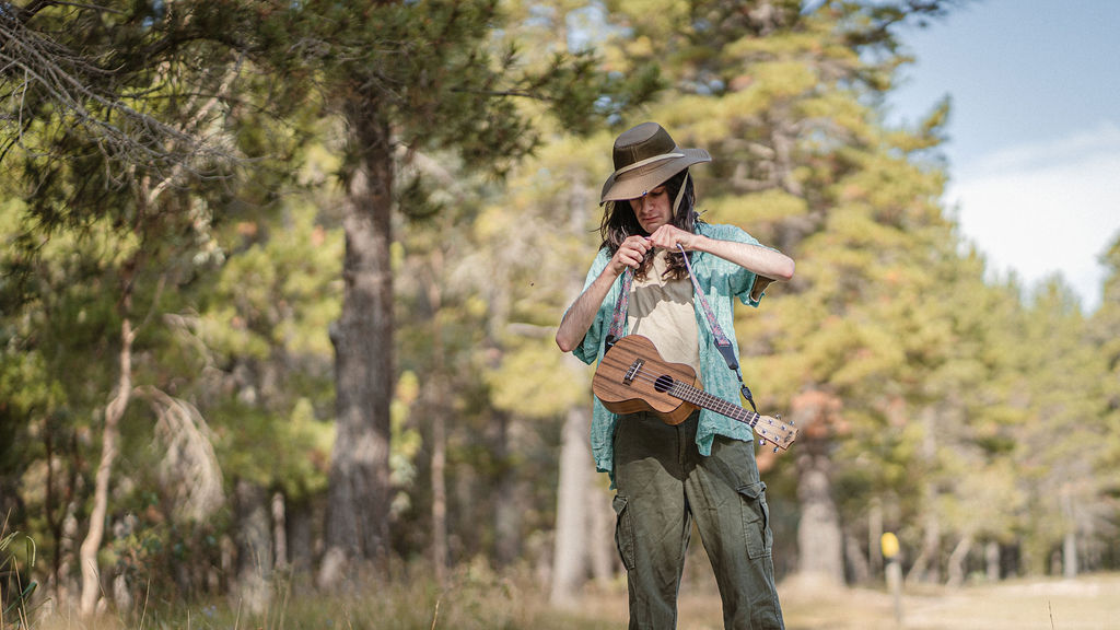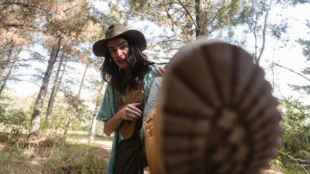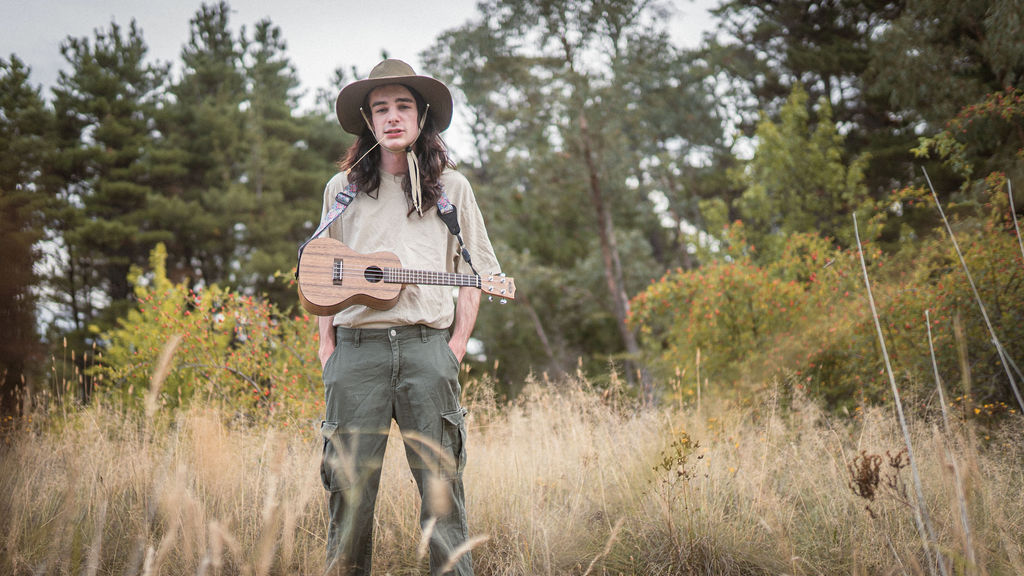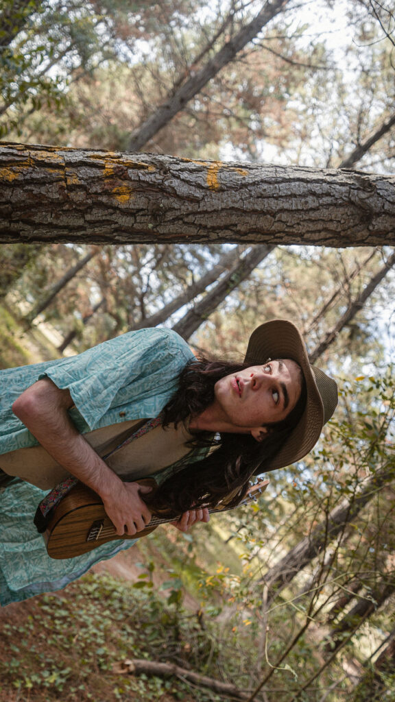 Tony and I returned to Fadden Pines, this time with the purpose of getting some photos that look absolutely crazy. Dressed as Brad, the character with the Horse Brother, I mime petting a horse next to me, take a dump behind a tree, search through the long grass, make out with my ukulele, eat my ukulele and break reality next to a tree.