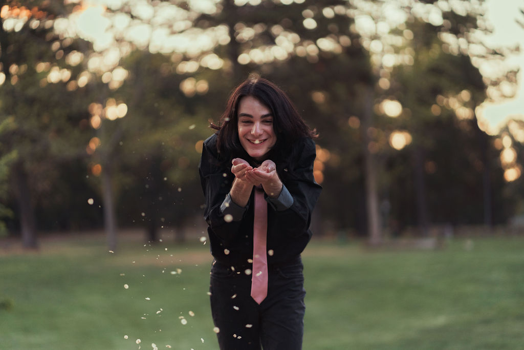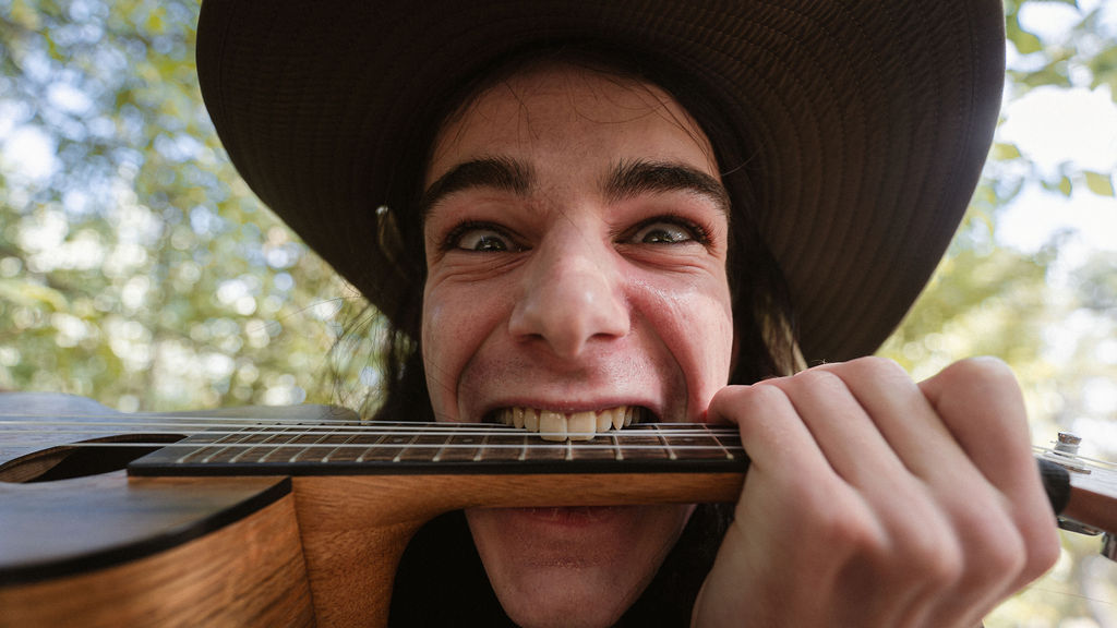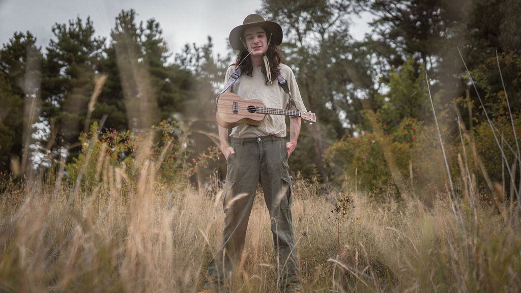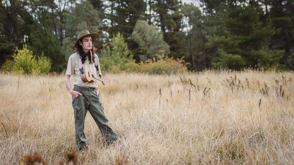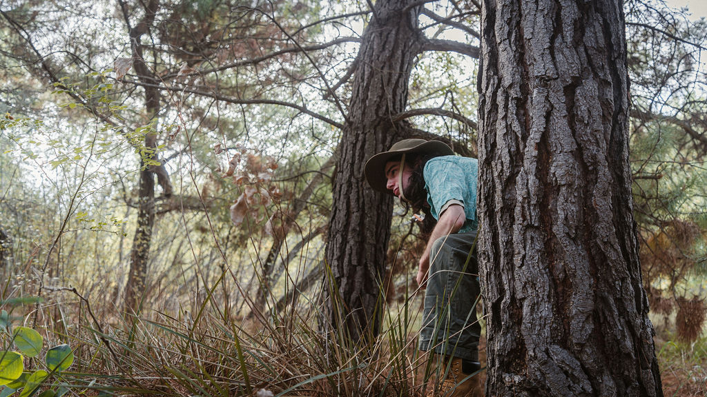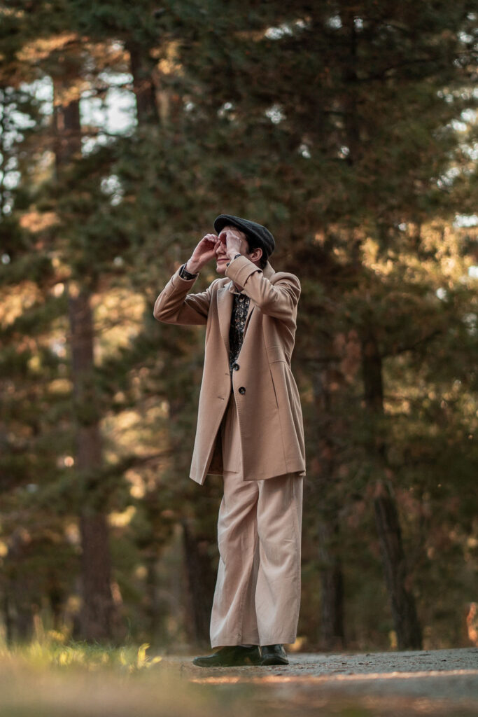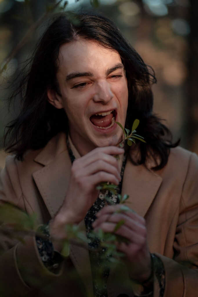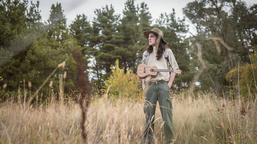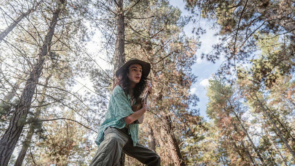 Tony and I returned to Fadden Pines, this time with the purpose of getting some photos that look absolutely crazy. Dressed as Brad, the character with the Horse Brother, I mime petting a horse next to me, take a dump behind a tree, search through the long grass, make out with my ukulele, eat my ukulele and break reality next to a tree.